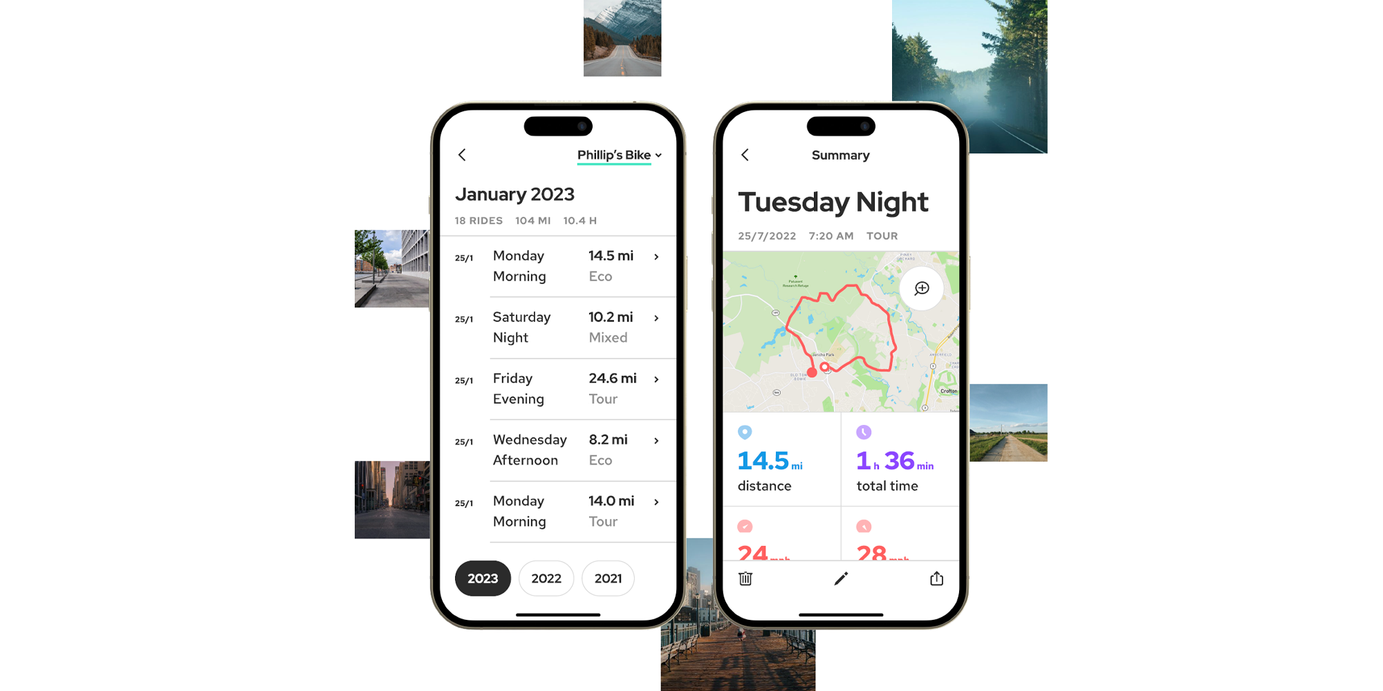 Connect multiple e-Bikes to seamlessly switch between different models while keeping an eye on all your biking activities and tracking ride history to stay on top of your cycling goals with the Cikada app.