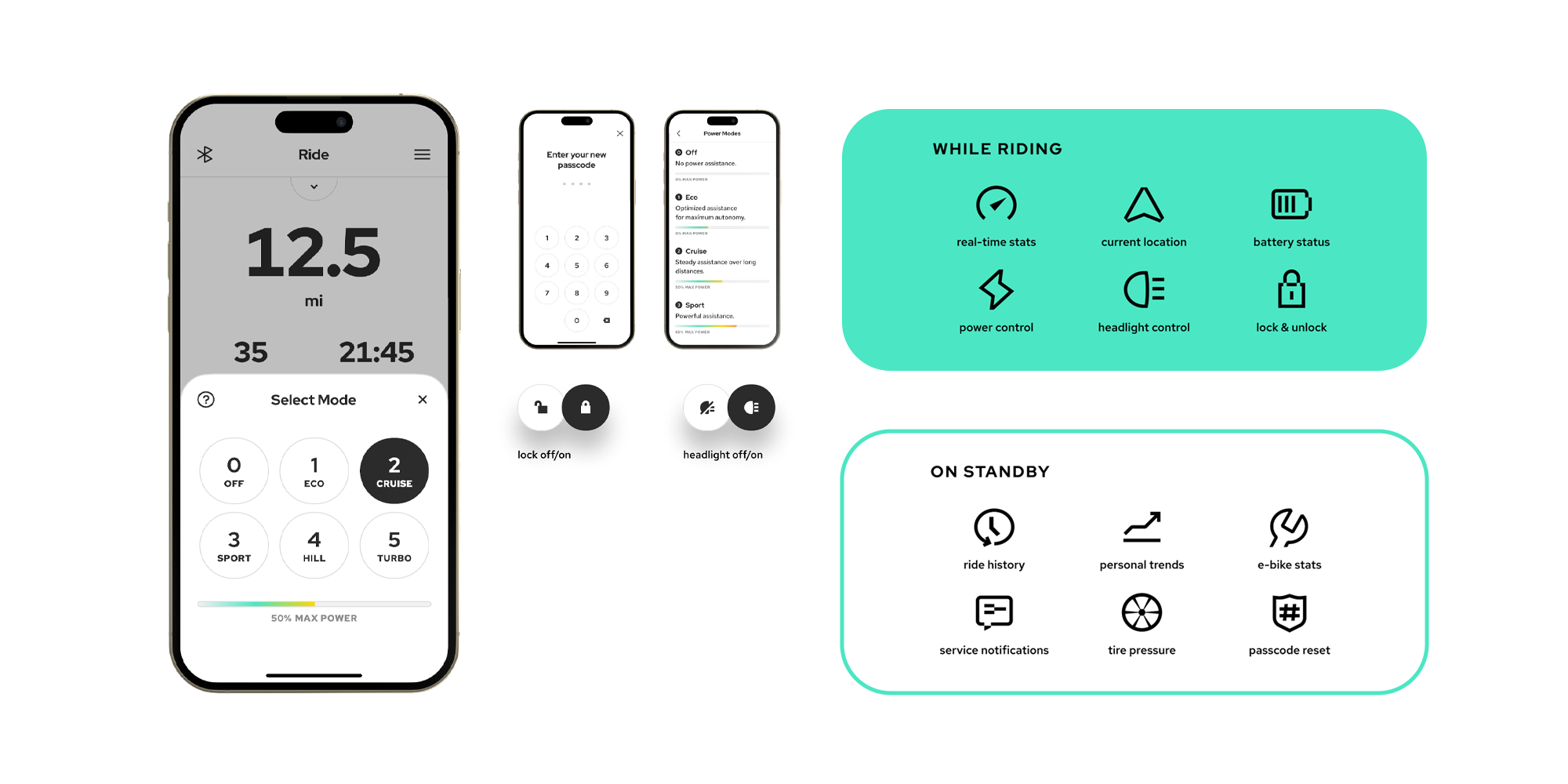 The first user to pair the e-Bike is recognised by the system as its owner. Other users need to enter the passcode to connect the e-Bike to the app.