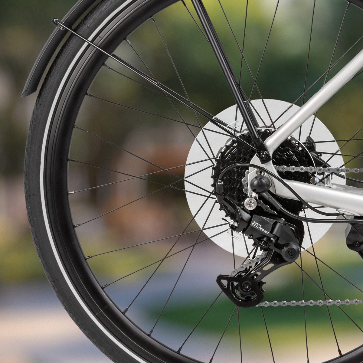 Enjoy effortless climbing, smooth acceleration and adaptability to different terrains thanks to the Shimano 9-speed derailleur allowing you to fine-tune your cadence, easily tackle steep hills and enhance your riding comfort and control. The integrated Shimano Cues technology offers smooth shifting, durability and ultimate versatility for every ride. Whether you’re riding on flat city streets, exploring gravel paths or conquering steep inclines, the multi-speed system lets you adjust effortlessly to changing conditions.